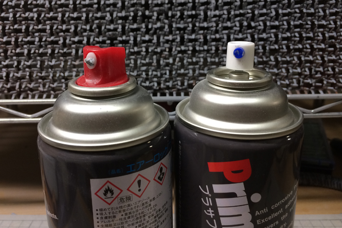 右が一般的な模型用塗料等のスプレー缶から取ってきた吹き出し部分のパーツです。