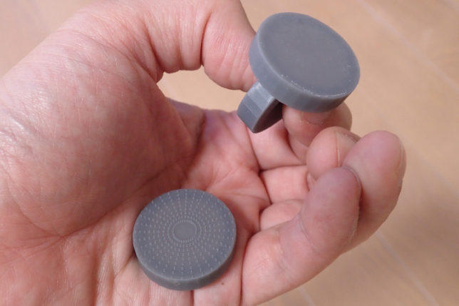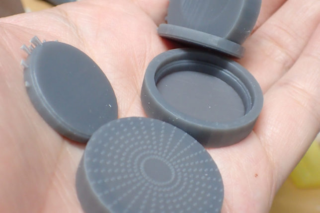 細かい円錐は間に挟んだメラミンスポンジがずれないようにするための滑り止めです。