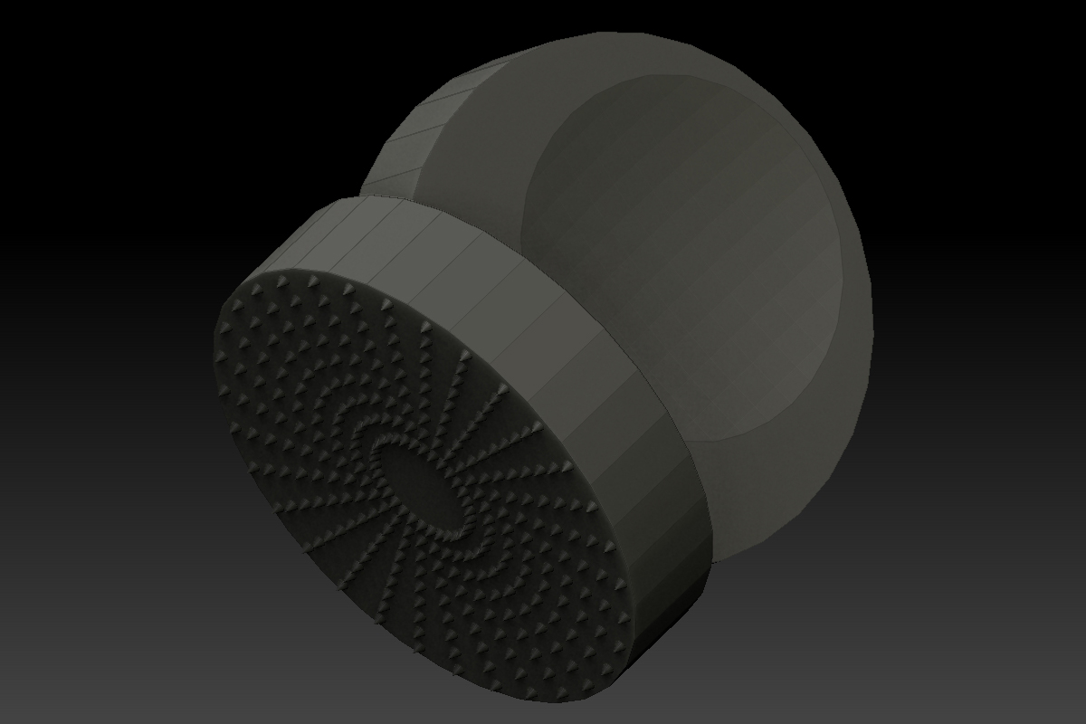 データはZBrushで作成したのですが、円柱外周部分は素のシリンダー3Dそのままでディバイドもかけていません。